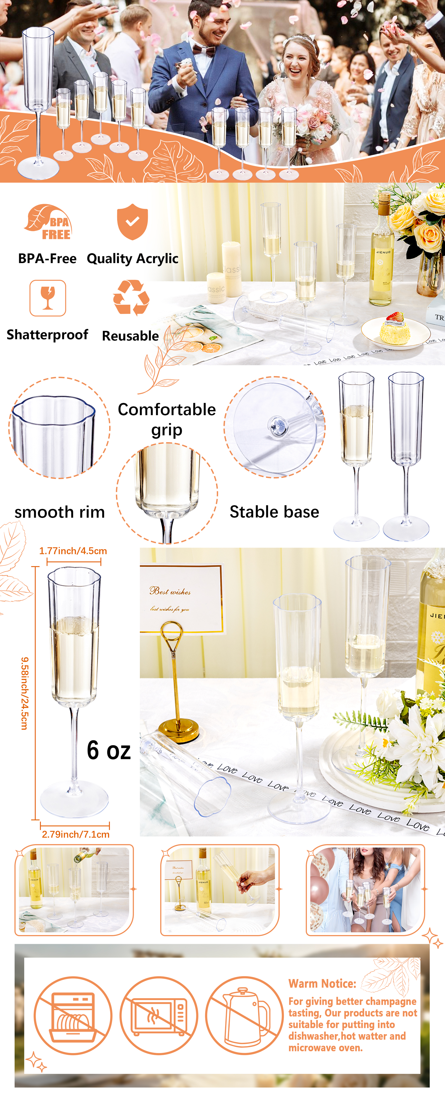 YOUBET 36 Pack Clear Champagne Flutes Plastic - 6 Oz Flower Wavy Champagne Plastic Glasses - Heavy Duty Vintage Disposable Flutes for Wedding Party Birthday Anniversary